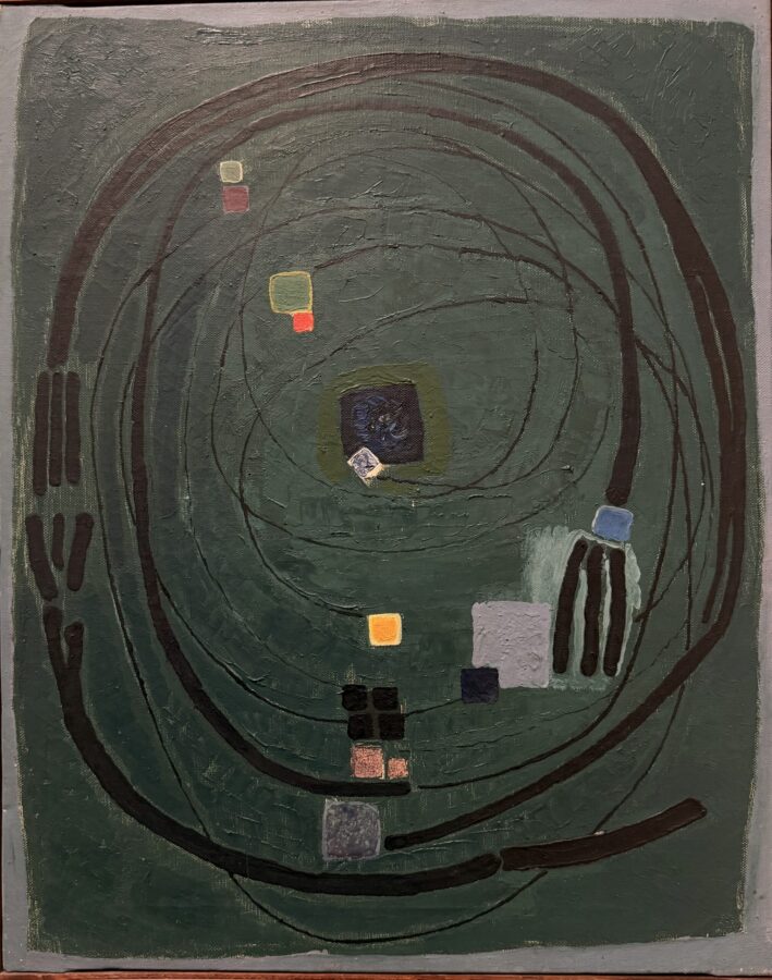 Nelle composizioni degli anni Sessanta e Settanta, la superficie pittorica si trasforma in campo di equilibrio tra pieni e vuoti, ritmo e silenzio.