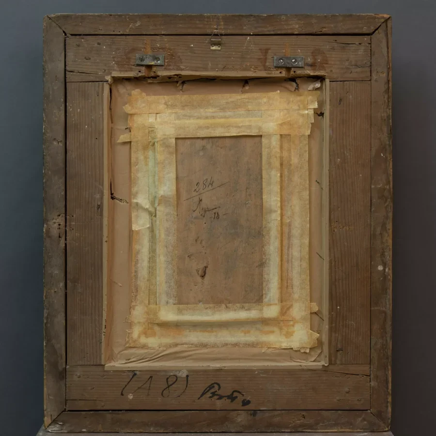 Oil on panel painting depicting a young woman by Silvestro Lega. On the back is visible the painter’s signature and date of the work and number of the private collection. The work is enriched by an Italian lacquered and mecha gilded frame.