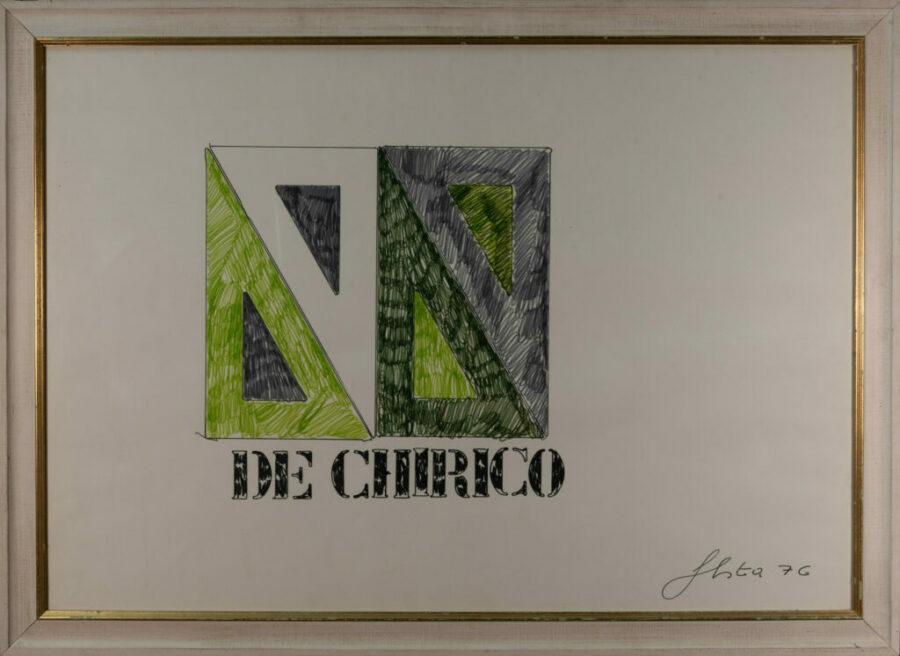 Tano Festa (Roma 1938 -1988) work on paper Tribute to De Chirico