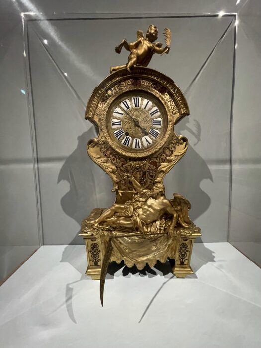 The passage of time is also explored through the beautiful antique clocks shown in the exhibition.