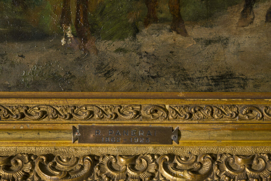 Huile sur panneau agrémentée d’un cadre doré de l’époque. Signée en bas à droite R. Panerai Parigi.