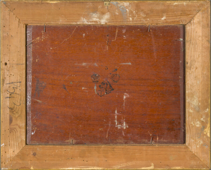 Peinture ancienne de Ruggero Panerai. Au dos, trois cachets apposés sur le panneau avec les dates de dépôt.