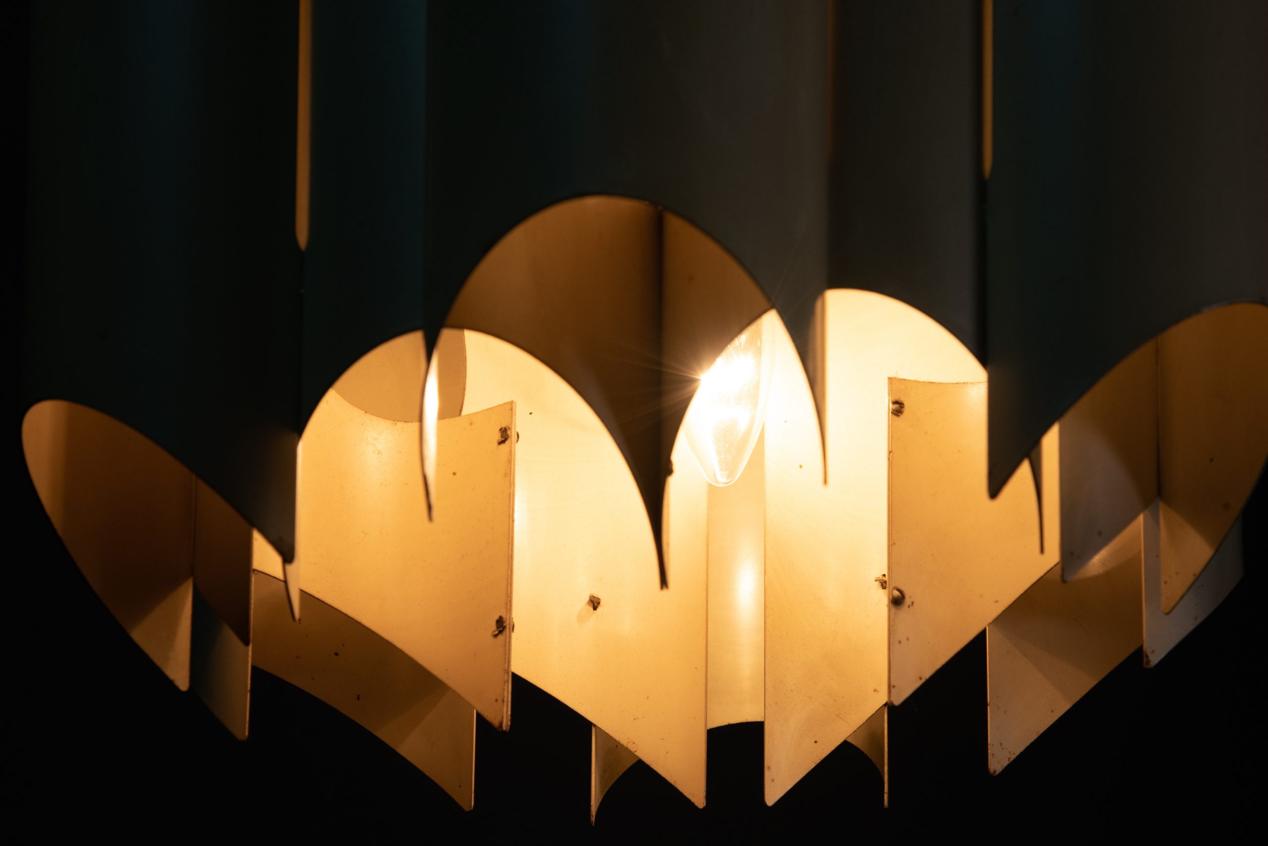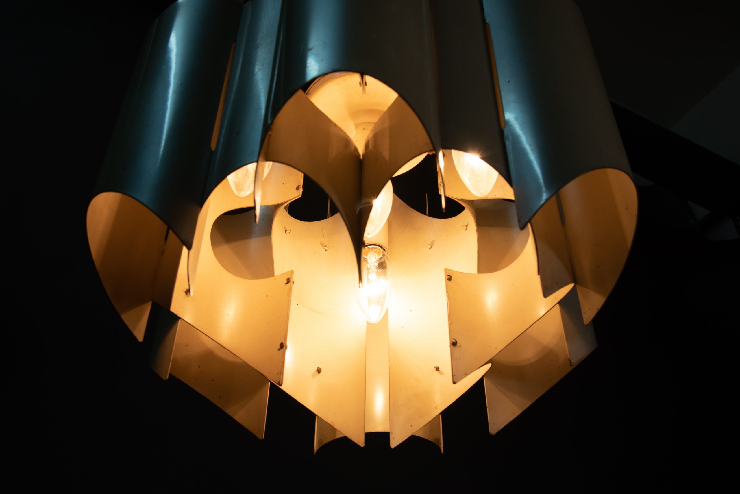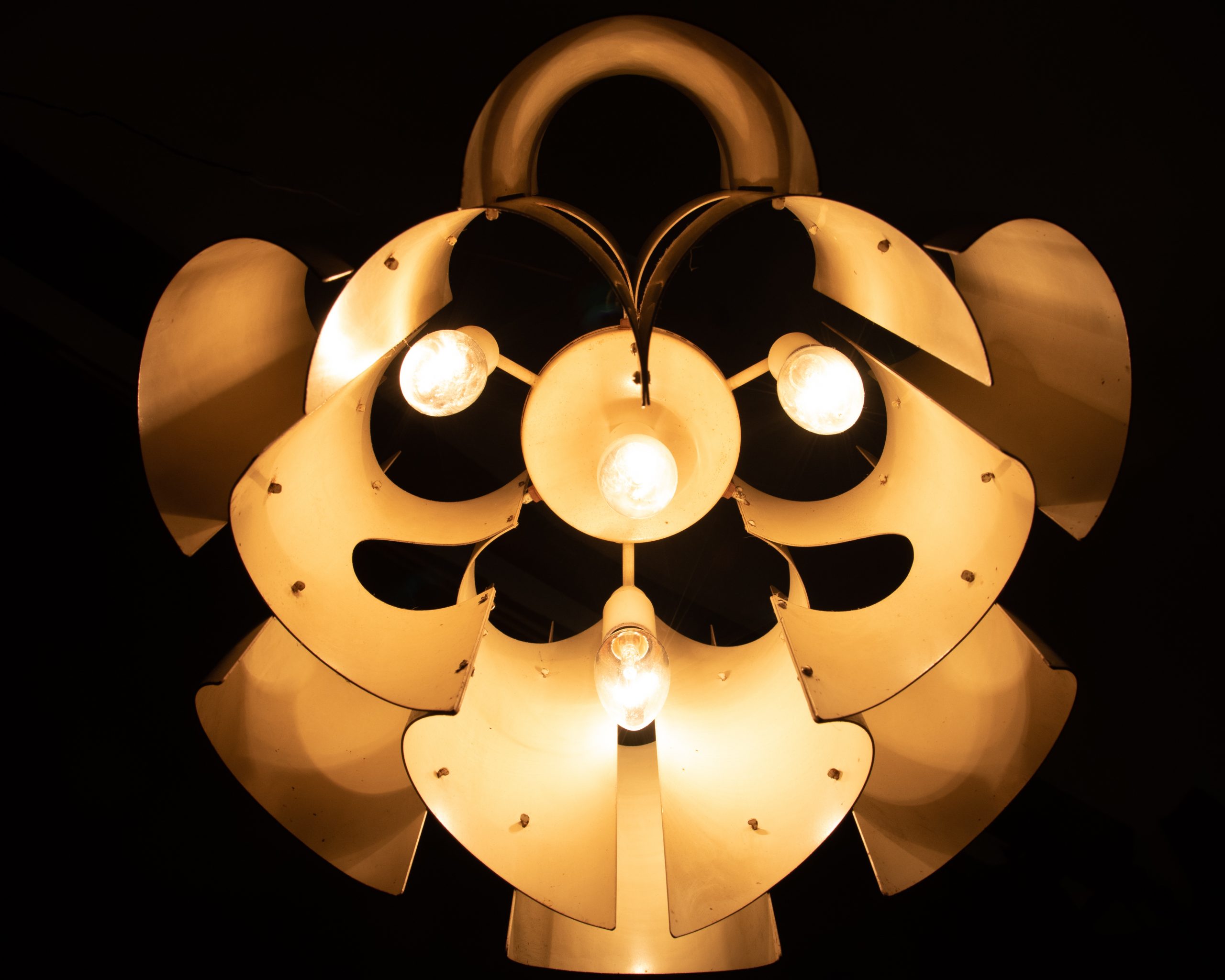 Des feuilles de métal nacré formant des tubes caractérisent ce de Robert Sonneman.