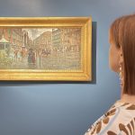 Dipinto su tavola raffigurante uno scorcio di piazza San Leone (attuale piazza Marconi) e l’arco Canale a Gragnano (NA) del pittore Carlo Brancaccio (1861-1920). Il dipinto impreziosito da una cornice, reca la firma Carlo Brancaccio Napoli in basso a destra.