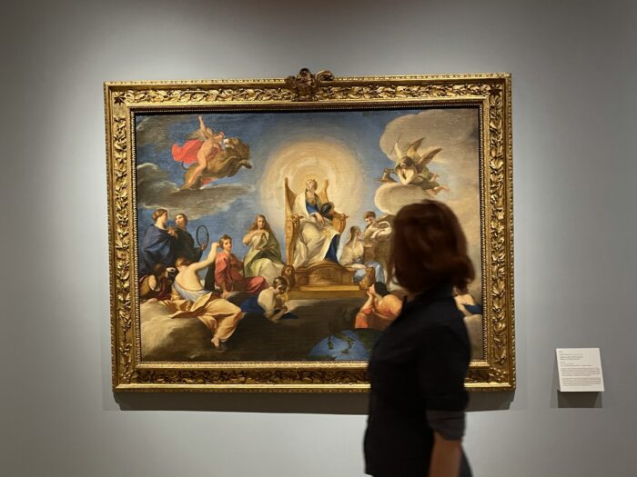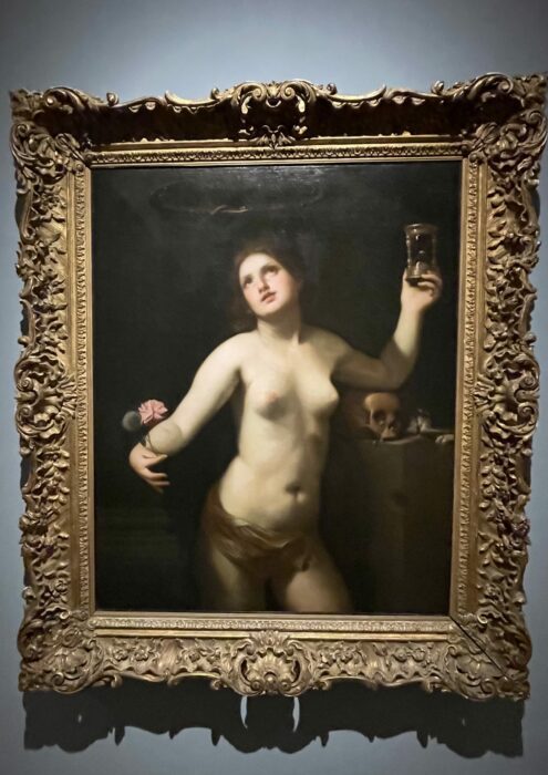Possiamo continuare con l’intenso dipinto che è stato scelto come emblema della mostra, cioè Il Tempo sconfitto dalla Speranza e dalla Bellezza dell’artista francese Simon Vouet.